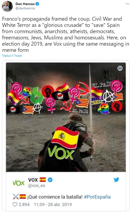 Thus, in 2019 the Spanish party system suffered its second transformation. From its foundation, VOX embraced a discourse characterised by a combination of authoritarianism, nativism, nationalism, and economic liberalism. Unlike other contemporary radical right-wing parties, the anti-immigration discourse is not at the very heart of their electoral platform, which focuses mainly on the national question and the challenges posed by the state of autonomies and, more recently, secessionism. In other words, VOX, more than defending national sovereignty against the intervention of supranational powers, has mobilized national identity against political options that, according to their imaginary, threaten the sovereignty of the country from within. Unlike other parties in this family, the articulation of a populist discourse is not a central part of its political stance.