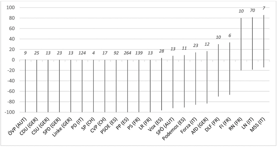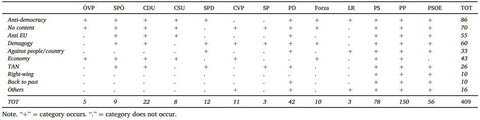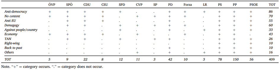 Linking the content of the two studies I presented here, we can say that mainstream parties do not only try to respond to the rise of populist actors by adopting their positions, but also by using specific forms of negative campaigning. However, using demonizing allegations towards populist radical right parties, as assumed by Mouffe, does not take place very often. While some center-left parties demonize the populist radical right, the center-right refrains from doing so. This is why my interpretation of the results goes exactly in the opposite direction of Chantal Mouffe’s work. Considering populist radical right parties as a threat for liberal democracy, established (center-right) parties should not refrain from naming the problem. Calling the populist radical right populist or emphasizing the links between extremist groups and those actors does not necessarily mean to be anti-democratic but to fight the enemies of political pluralism.